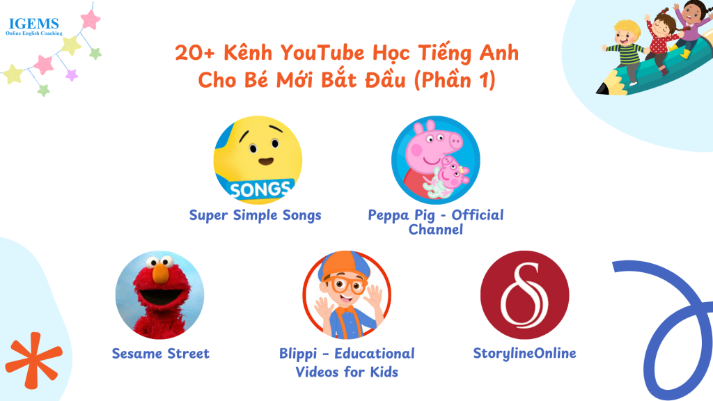 IGEMS đã chọn lọc và tổng hợp 20 kênh Youtube phù hợp cho nhu cầu học tiếng Anh của con.