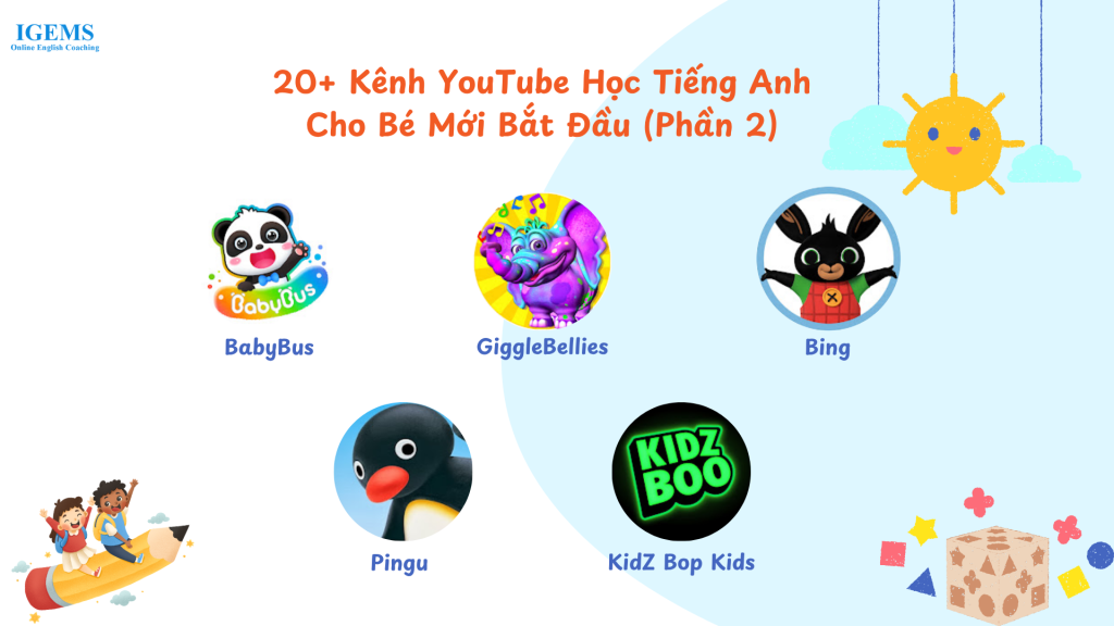 Trên đây là tổng hợp 20 kênh youtube hỗ trợ học tiếng Anh cho bé mới bắt đầu. Việc học tiếng Anh thông qua xem các video Youtube phù hợp với các bạn nhỏ vì sự sinh động và giàu tính tương tác. Nếu bạn cũng đang cần tìm một môi trường học thực tế như vậy thì có thể tham khảo thêm khóa học tiếng Anh online 1 kèm 1 tại IGEMS nhé!