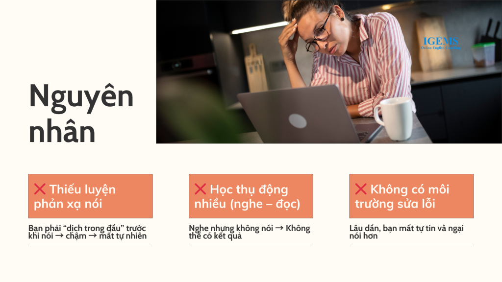 Bạn phải “dịch trong đầu” trước khi nói → chậm → mất tự nhiên