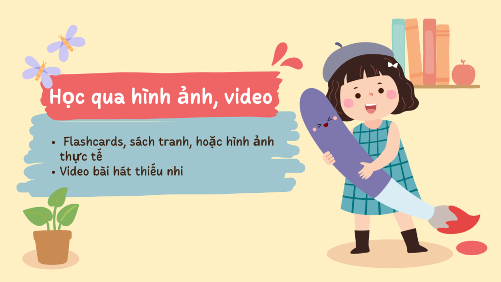 Trẻ nhỏ tiếp thu tốt nhất qua hình ảnh. Bố mẹ có thể dùng flashcards, sách tranh, hoặc hình ảnh thực tế trong nhà để dạy con.