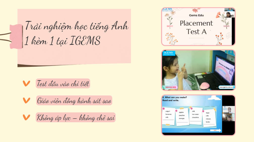 3️⃣ Trải nghiệm học tiếng Anh 1 kèm 1 tại IGEMS