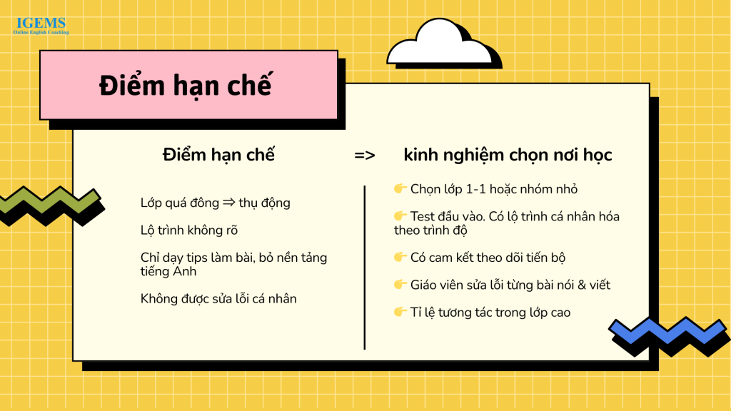 Lớp nhóm nhỏ hoặc 1 kèm 1 để đảm bảo tương tác