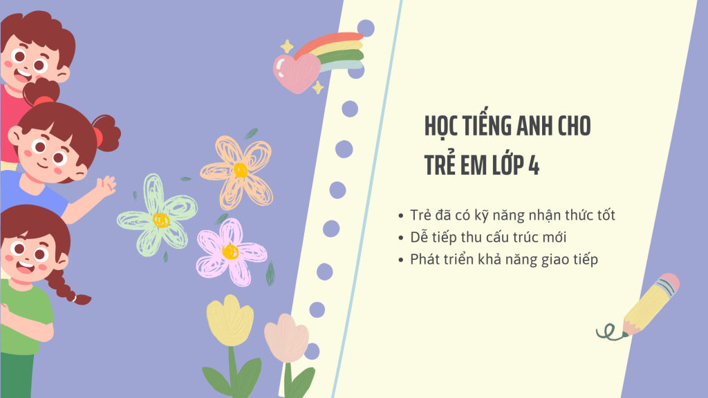 Ở lớp 4, trẻ đã có kỹ năng nhận thức tốt, dễ tiếp thu cấu trúc mới và phát triển khả năng giao tiếp. Nếu được đầu tư đúng cách, trẻ sẽ: