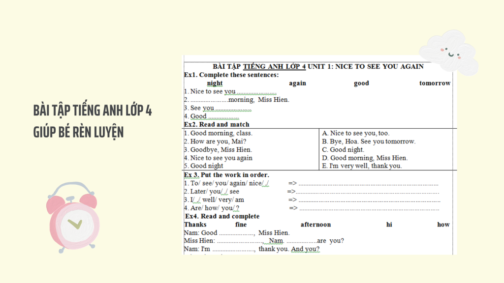 6. Bài tập tiếng Anh lớp 4 giúp bé rèn luyện