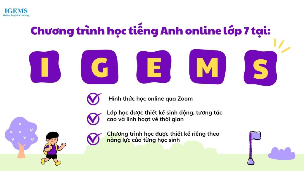 Tại IGEMS, chương trình học tiếng Anh online lớp 7 1 kèm 1 được thiết kế riêng theo năng lực của từng học sinh, giúp các em vừa nắm chắc kiến thức trong chương trình mới, vừa phát triển phản xạ giao tiếp tự nhiên.