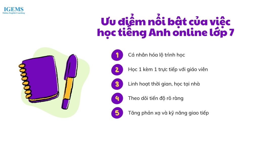 Việc học tiếng Anh online lớp 7 tại IGEMS mang lại nhiều lợi ích vượt trội so với cách học truyền thống: