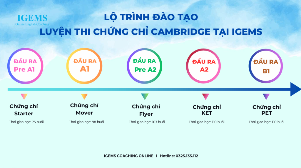 Tại IGEMS, chương trình luyện thi Cambridge được thiết kế dựa trên khả năng, độ tuổi và mục tiêu học tập của từng học viên.