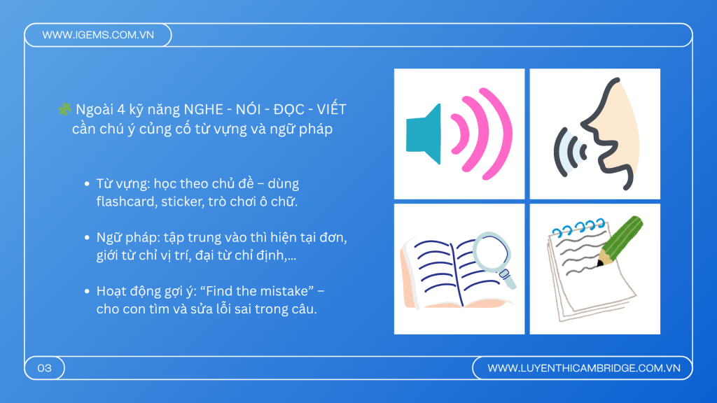 👉 Các khóa luyện thi Cambridge tại IGEMS được thiết kế theo chuẩn Cambridge, với: