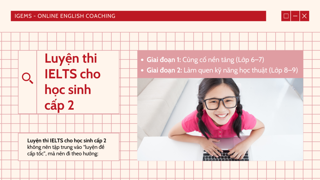 Tuy nhiên, nền tảng tiếng Anh vẫn chưa ổn định hoàn toàn. Vì vậy, luyện thi IELTS cho học sinh cấp 2 không nên tập trung vào “luyện đề cấp tốc”, mà nên đi theo hướng:
