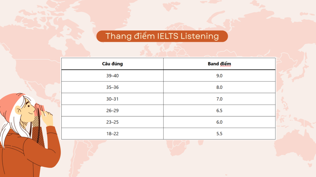 Thí sinh hoàn toàn có thể xác định được trình độ của mình khi luyện tập IELTS Listening ở nhà dựa vào thang điểm này.