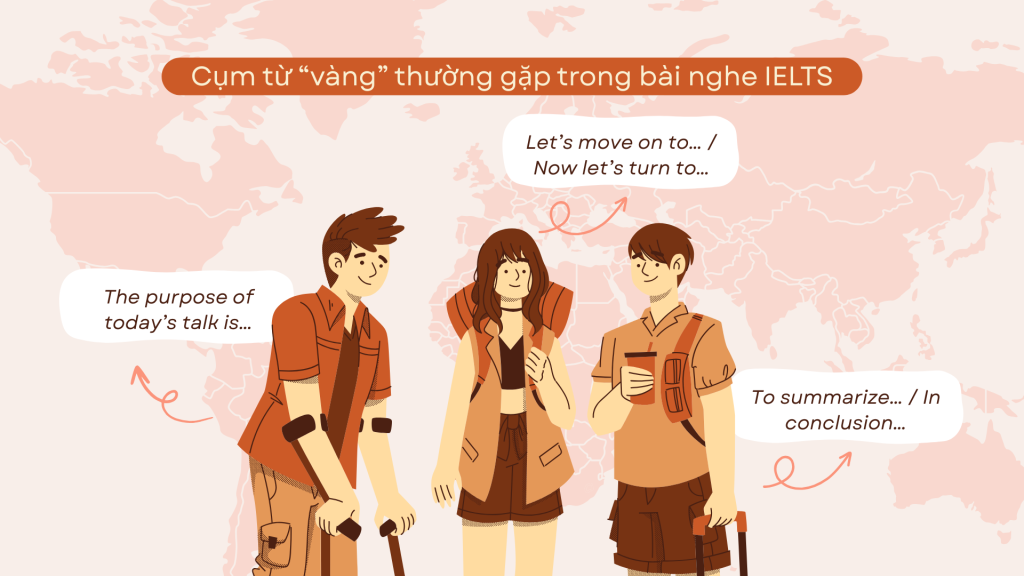 Ghi nhớ các cụm này sẽ giúp bạn định hướng và bắt thông tin nhanh hơn trong suốt bài nghe.