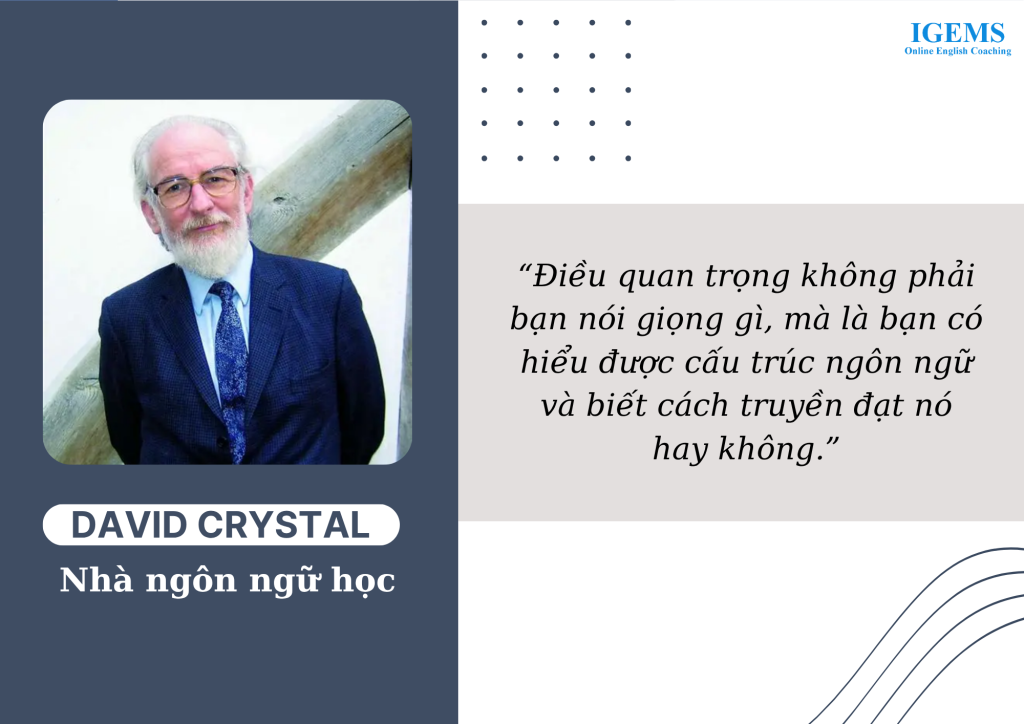 Như ngôn ngữ học gia David Crystal từng nhấn mạnh: “Điều quan trọng không phải bạn nói giọng gì, mà là bạn có hiểu được cấu trúc ngôn ngữ và biết cách truyền đạt nó hay không.”