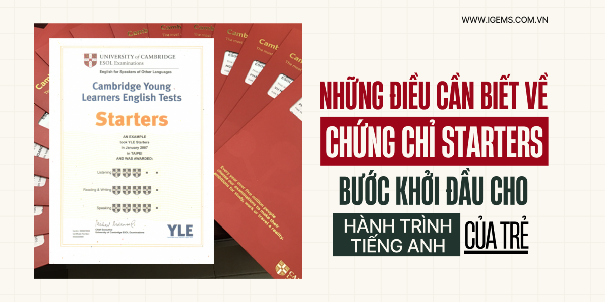 Trong giai đoạn đầu làm quen với tiếng Anh, chứng chỉ Starters là cột mốc quan trọng giúp trẻ xây dựng nền tảng ngôn ngữ vững chắc và tạo hứng thú học tập lâu dài. Nếu ba mẹ đang tìm hiểu về kỳ thi Cambridge cho con, hãy cùng IGEMS tìm hiểu tất tần tật về chứng chỉ này – từ nội dung, lợi ích đến phương pháp luyện thi hiệu quả.