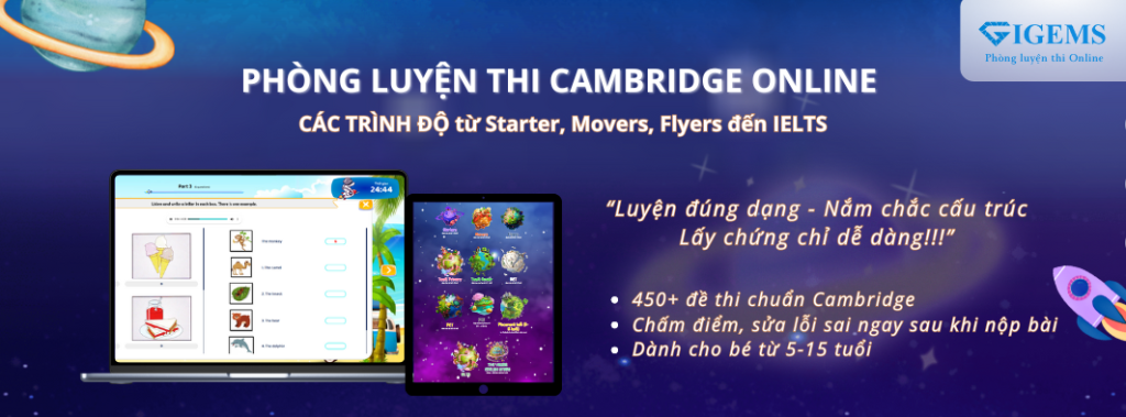 - 🌟 Phòng luyện ảo Cambridge với hơn 450 bộ đề thật từ Starters đến Flyers